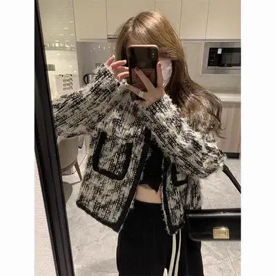 Small style woven small fragrant short coat with niche design for women in spring and autumn. American retro high-end jacket top for small people. This niche woven short fragrant Style Jacket is an ideal choice for women in spring and autumn. Selected high-quality fabrics and exquisite weaving techniques present a unique Xiaoxiang style.