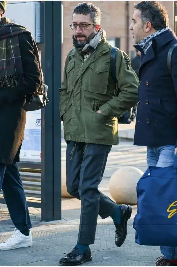 Don’t think that a rugged work jacket can’t create an elegant gentleman style. If you like business casual style, then you can boldly try this combination.